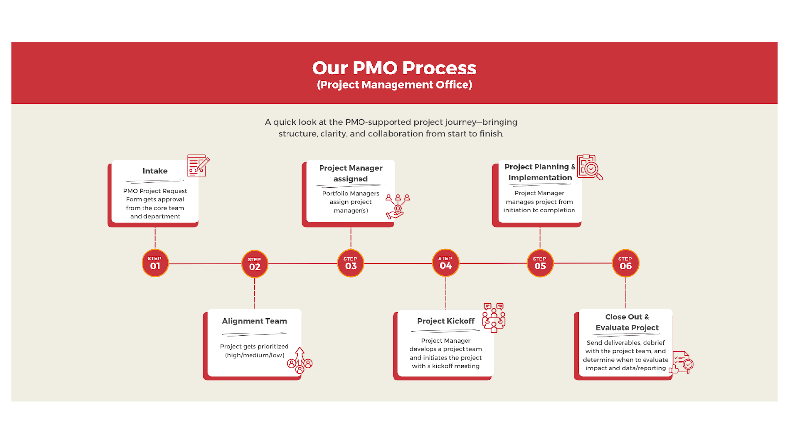 A:  The PMO is here to help the whole organization by focusing on three main things: